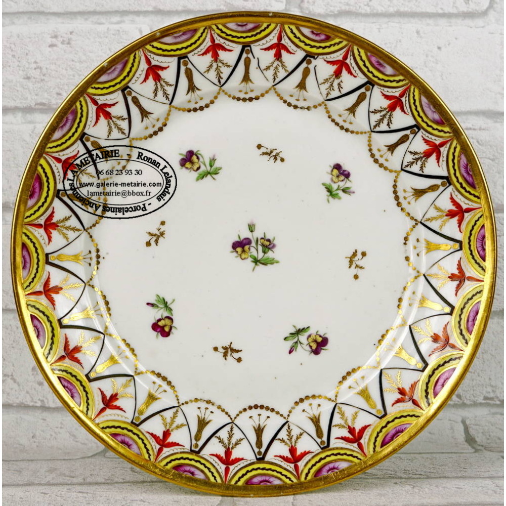 Cette assiette est très intéressante, elle nous présente les tous premiers décors de la manufacture de DARTE FRERE à PARIS. Très connue pour sa production sous l'empire et la restauration, mais pratiquement inconnue pour son début de production comme sur cette assiette.